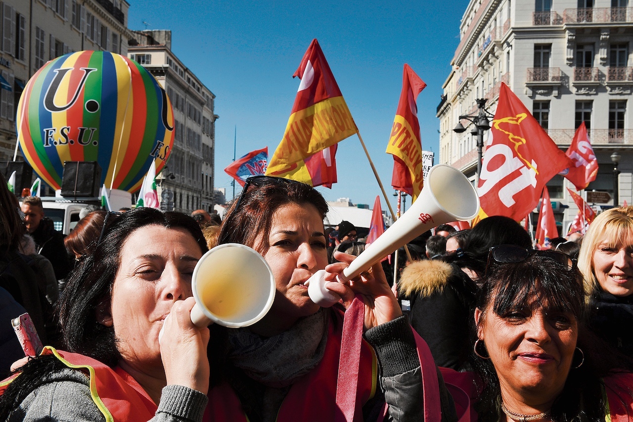 Diese Strategie schwächelt gerade. Dutzende von aggressiven Medienauftritten von Macrons Leuten haben die Eisenbahnerinnen und Eisenbahner zusammengeschweisst. Der Streik wird härter, die Demonstrationen wachsen. Es ist eine Auseinandersetzung um die Köpfe. Denn es geht um viel mehr als um die Bahn. Macron provoziert die Konfrontation, weil die Bähnlergewerkschaften, vorab die CGT und Sud Rail, sich seit Jahren erfolgreich gegen die neoliberale Zerstörung des Service public wehren. Oft stellvertretend für andere Berufsgruppen, die weniger gut gewerkschaftlich organisiert sind. Rémy, der Rangiergruppenchef im Bahnhof Saint-Charles von Marseille, sagt zu work: «Wenn wir diese Auseinandersetzung nicht gewinnen, ist es um Schule, Spitäler, Uni, Sozialversicherungen und den ganzen öffentlichen Dienst Frankreichs geschehen. Wir dürfen nicht verlieren!» Doch dafür mussten sie erst eine Menge Gerüchte über ihre «Privilegien» wegräumen. Die «Schuhprämie»? Gab es nie. Die «Kohleprämie»? Wurde 1974 abgeschafft. Überhaupt die zahlreichen Prämien und hohen Löhne? 60 Prozent der Bähnlerinnen und Bähnler verdienen, nach Zahlen der SNCF, weniger als 2450 Euro netto pro Monat, mehr als ein Viertel sogar weniger als 2000 Euro (2350 Franken).