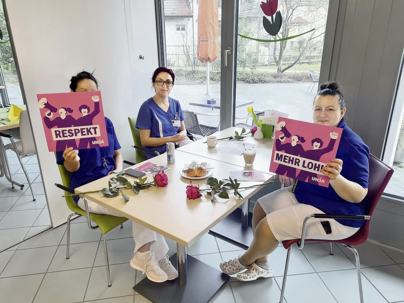 So muss es beim Lohn endlich vorwärtsgehen. Gefordert werden die Verkürzung der Arbeitszeit, voller Lohnausgleich, bessere Arbeitsbedingungen und Lohner­höhungen in den ­sogenannten Frauenberufen. Explizit: gleicher Lohn für gleichwertige Arbeit. Ausserdem müsse das Gleichstellungsgesetz verschärft und bei Verstössen strenger durchgegriffen werden. Etwa mit echten Lohnkontrollen und Sanktionen.