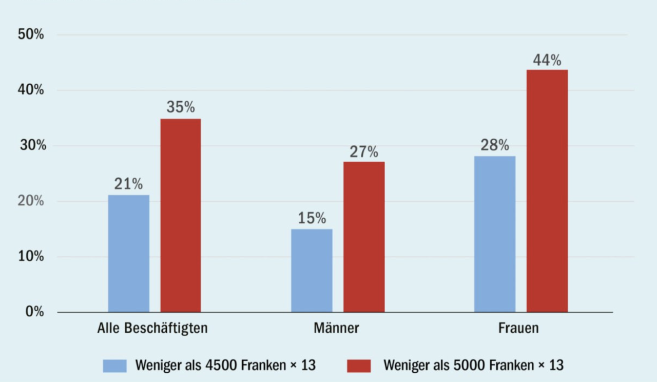 Mit dem mittleren Lohn kann man sich heute in der Schweiz nur so viel leisten wie 2015. In Franken wird zwar mehr ausbezahlt.