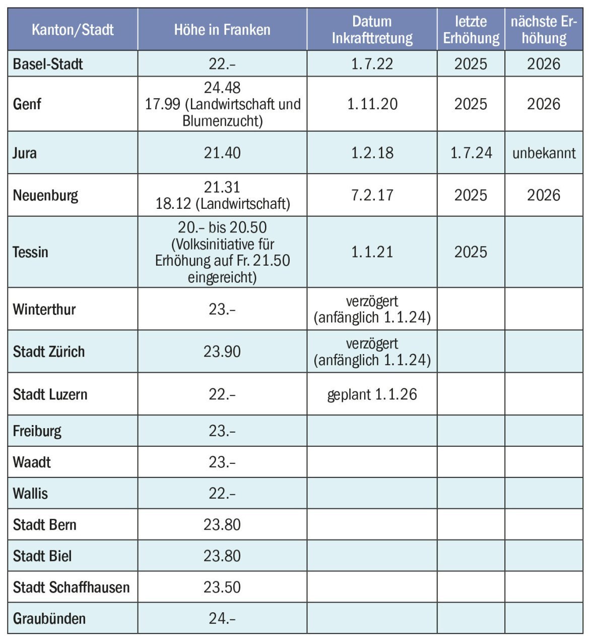 Die Bevölkerung sieht Handlungsbedarf bei den Löhnen. Zum Entsetzen der Gegnerinnen. Das zeigt sich deutlich beim Mindestlohn für die Städte Zürich und Winterthur. Obwohl die Initiativen vom Stimmvolk deutlich angenommen wurden, verzögert sich die Einführung. Nachdem die lokalen Gewerbeverbände Beschwerde eingereicht hatten, pfiff das Verwaltungsgericht des Kantons Zürich das ganze Vorhaben zurück. Derzeit liegt das Geschäft beim Bundesgericht, das nun über die Einführung bestimmt.