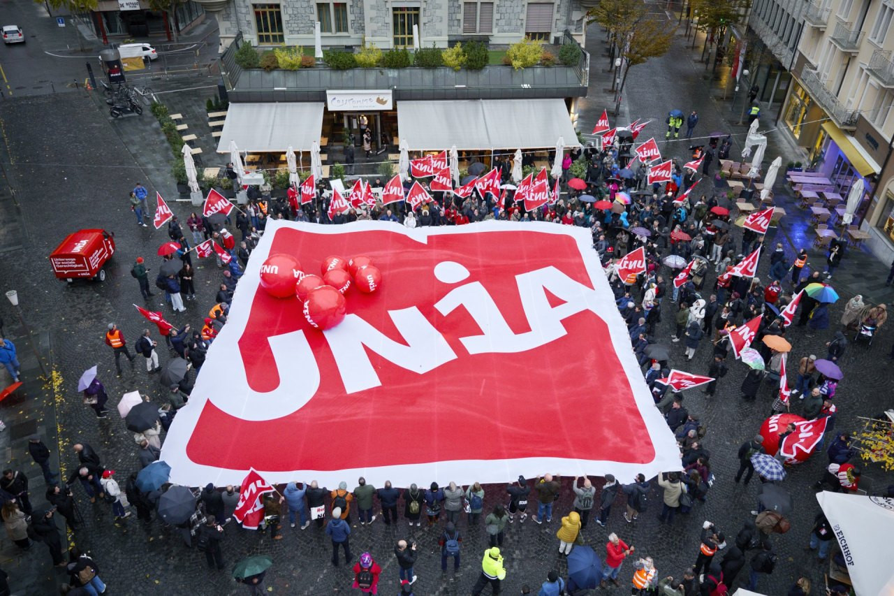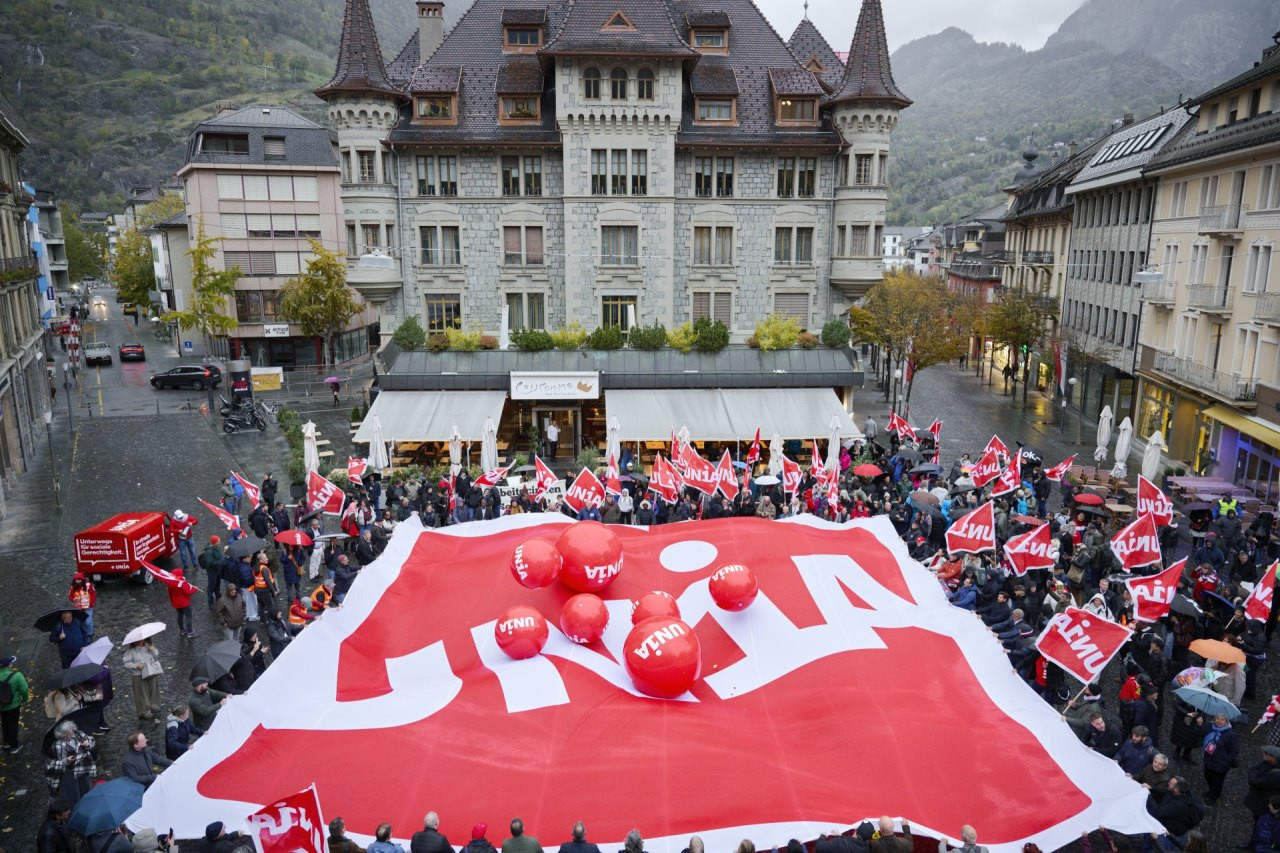 Die Gewerkschaft Unia hält zurzeit ihren fünften Kongress in Brig ab. Der erste Tag endet mit einer starken Aktion, die zeigt: Diese Gewerkschaft ist nicht so leicht in die Knie zu zwingen!