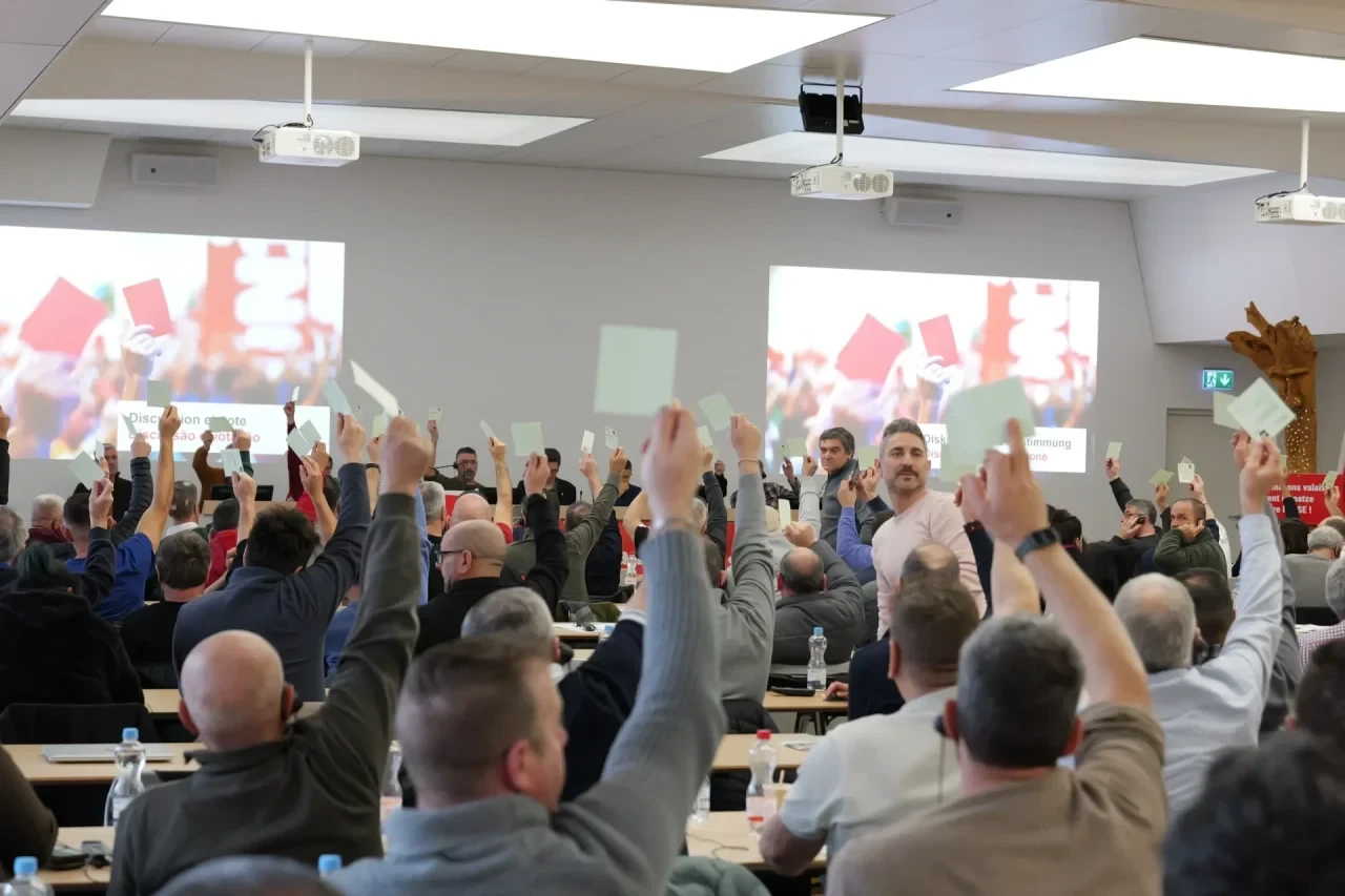Ein Maurer aus Luzern sagte: «Sechs Jahre ohne LMV-Verhandlungen sind heikel. Wir müssen gut aufpassen, dass wir den Schwung nicht verlieren!» Weniger Bewegung komme gar nicht in Frage, meinte auch ein Strassenbauer aus Zürich. Im Gegenteil müsse in den kommenden Jahren auf den Baustellen noch stärker mobilisiert werden. Denn: «Wir alle haben eigentlich mehr erwartet – und mehr wäre auch möglich!» Nico Lutz pflichtete ihm bei: «Wenn wir uns sechs Jahre zurücklehnen, wird es schwierig! Deshalb müssen wir weiterkämpfen und die neuen Verbesserungen konsequent durchsetzen.» Insgesamt sei das Ergebnis aber als «klar positiv». Dank der neuen Arbeits- und Reisezeitregelung sinke die Belastung deutlich. Und: «Es gelang uns eine Reallohnentwicklung zu sichern, die klar über den Ergebnissen der letzten zehn Jahre liegt.» Das sahen auch die Bauarbeiter-Delegierten so. Die Schlussabstimmung fiel jedenfalls sehr deutlich aus.