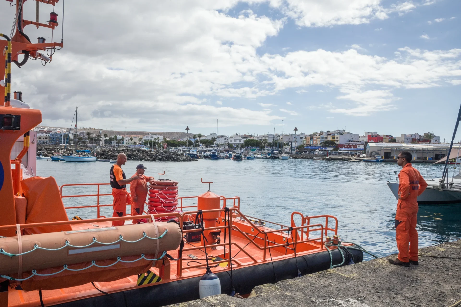 RETTER IN NOT: Zwei Mitarbeiter der «Salvamento Marítimo», der Seenotrettung, im Hafen von Arguineguín auf Cran Canaira, Spanien. (Foto: Giacomo Sini)